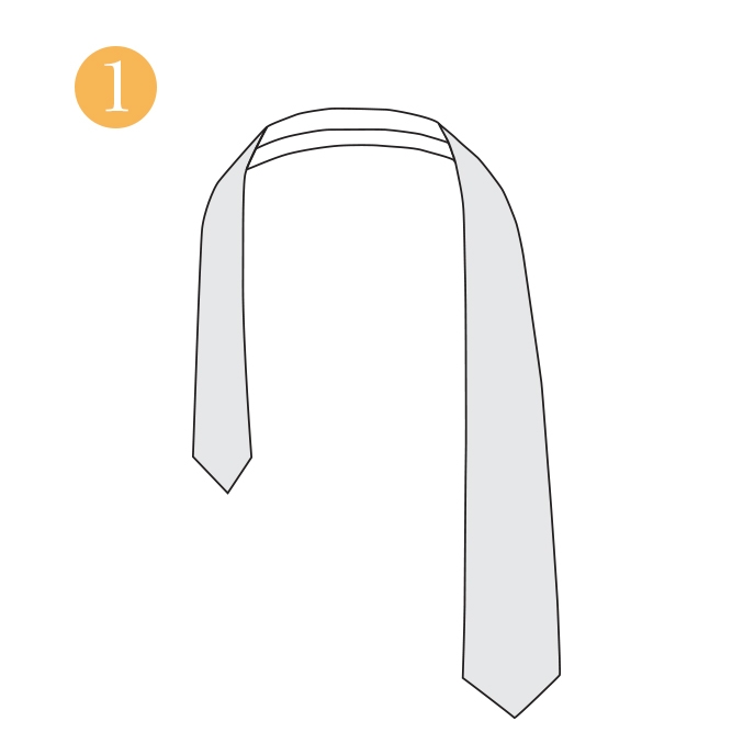 Start with the wide end of the tie on the right and the small end on the left. Slide the standing part of the rope over center of the loop. To start the noose knot wrap the working end over the standing end to form a 46 in 1015 cm loop.