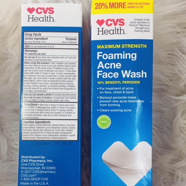 Treats and prevents acne blemishes. Its active ingredient is benzoyl peroxide at 10. CVS Foaming Acne Wash Maximum Strength - 10 Benzoyl Peroxide 66 oz Clear up your acne prevent new acne blemishes from forming with CVS Health Foaming Acne face wash.