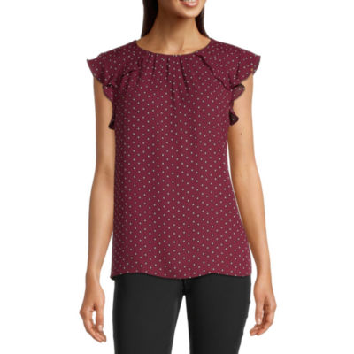 Liz Claiborne Womens Round Neck Short Sleeve Blouse Color Burgundy Passion Jcpenney