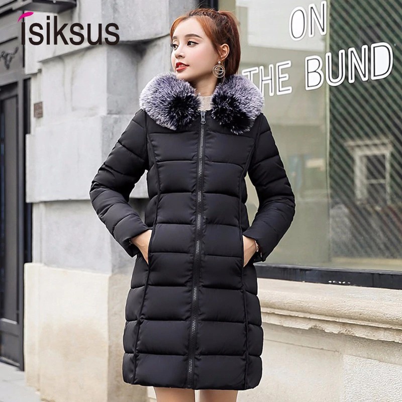 Isiksus Padded Warm Down Jackets Women Winter Plus Size Long Black Thick Fur Hooded Coat Jacket Shopee Indonesia